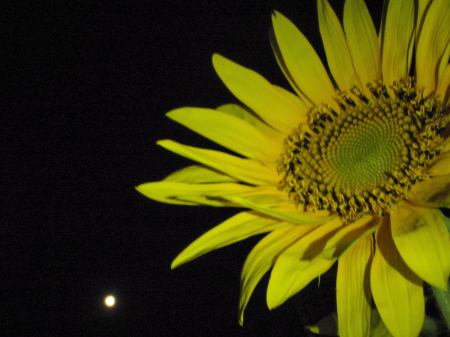 後ろの明るいのは月