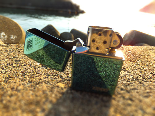 そこに綺麗な青色のジッポーが飾ってあって