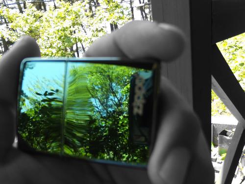 こうやって外の植物を反射させると