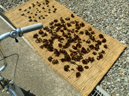 俺の足元で、いっぱいにゴザの上で天日干しされている