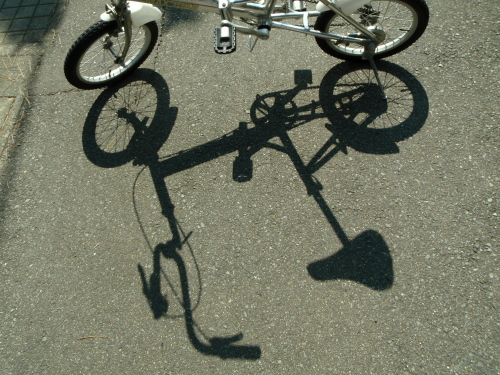 チャリンコから降りて日陰で休んでても