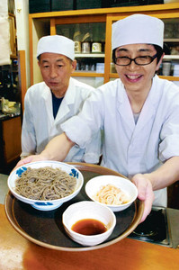 「おまん小豆そば」の試食会が三十日、同町津幡の料理店「大鵬」で開かれ、