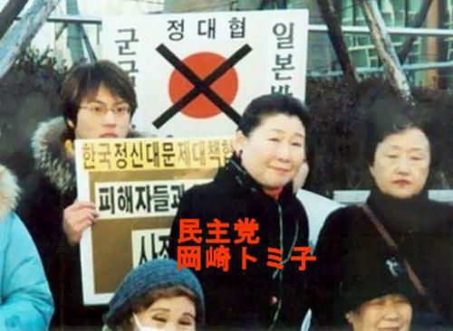 岡崎氏は、韓国で反日デモに参加したほか