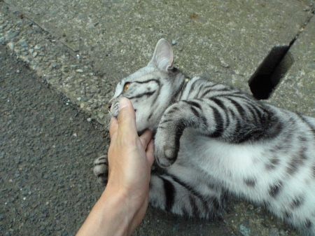 綺麗な柄の猫のガブリで