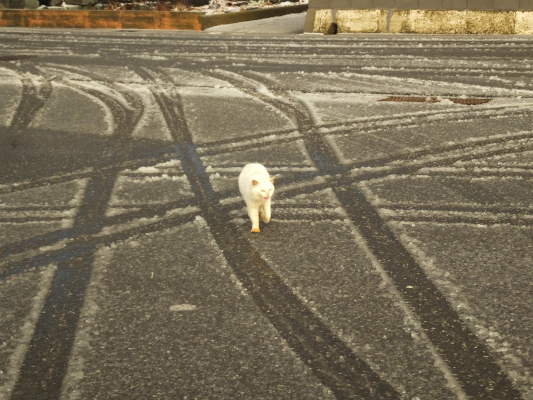 こんなシャバシャバの雪の上で肉球つめたくないのか?