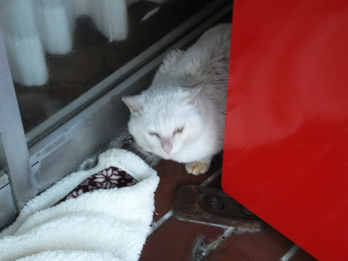 毛布を嫌がって自販機の裏に隠れちゃったり