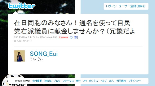 民主党 「 在日外国人からの献金を合法にしよう 」
