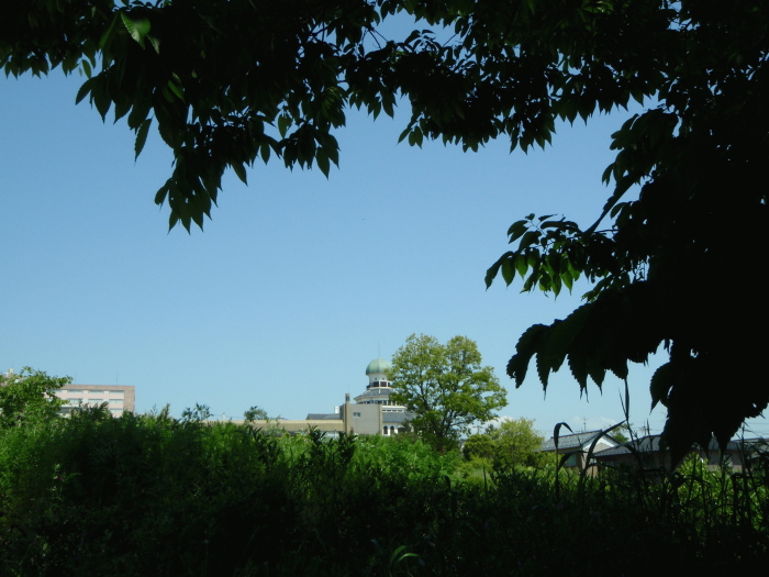 木陰から龍〇館が見えた 700×525