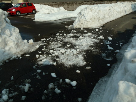 いつまでも駐車場の端の雪が融けないから