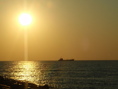 夕陽が海に落ちるのを見てましたら