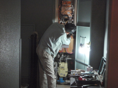 着々と新しい湯沸かし器設置施工が行われているが