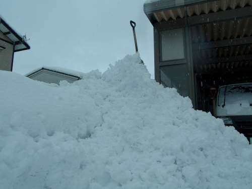 この雪山が倉庫駐車場の両脇にあるのだけど