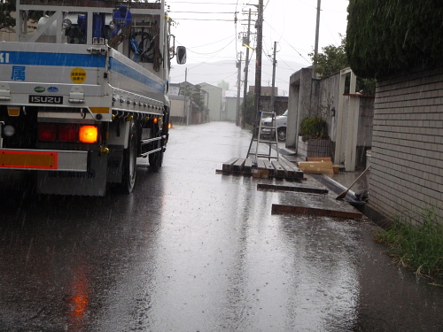 午前中、土砂降りなった