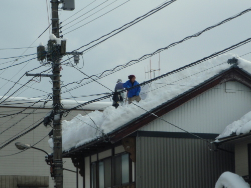 まさに雪下ろし真っ最中