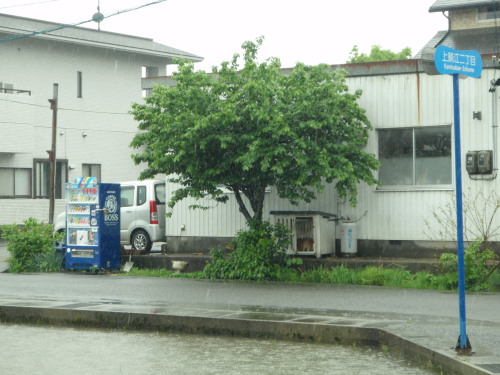 土砂降りの雨の中