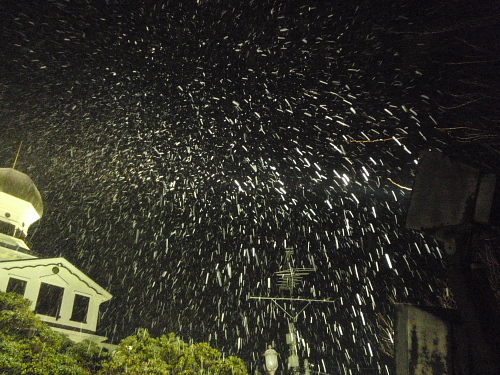 雪が舞い散るドラゴン館なんて