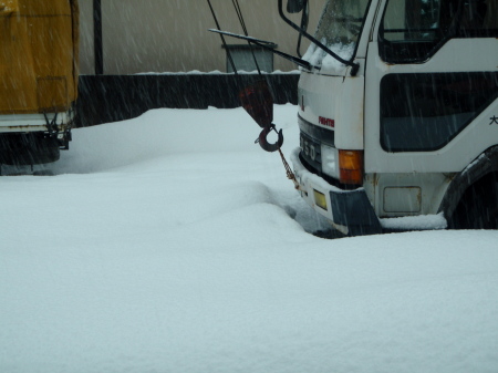 この雪山が倉庫駐車場の両脇にあるのだけど
