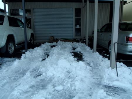 倉庫の駐車場の雪かたし