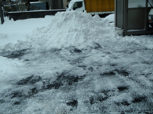 倉庫前の雪かたししてたら