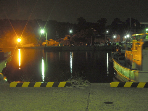 夜の漁港に向かう