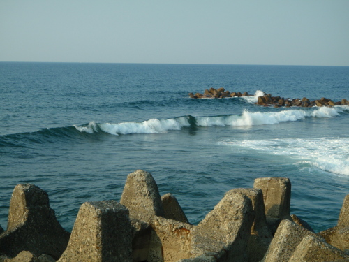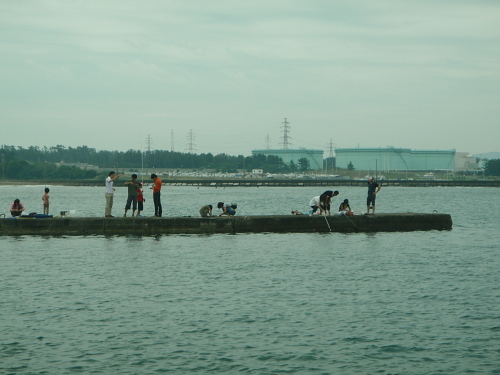 釣人が波消し突堤の先っぽで釣できるくらいの状態