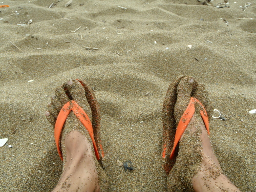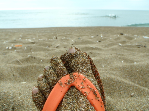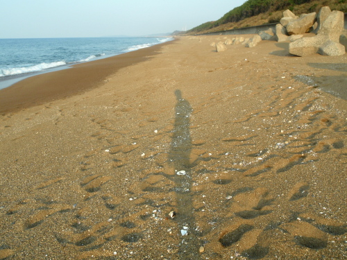 地元の砂浜はどこも茶砂だ