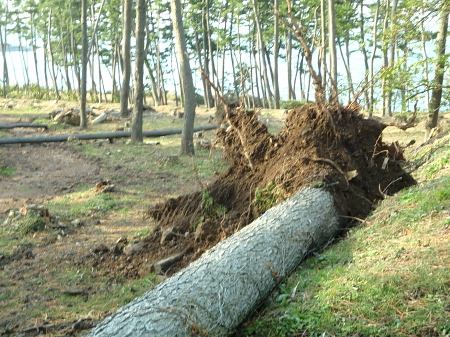 まだ若い松が倒木していた