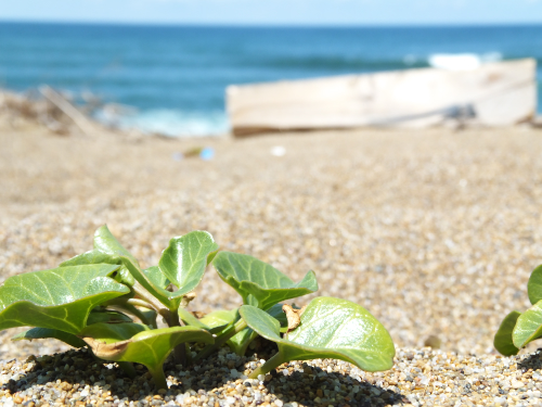 この浜に生える植物って、なんで枯れないんだろうか?