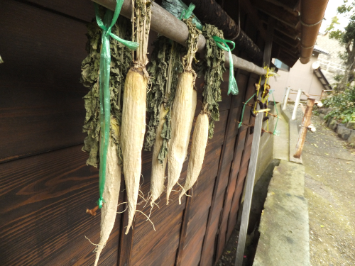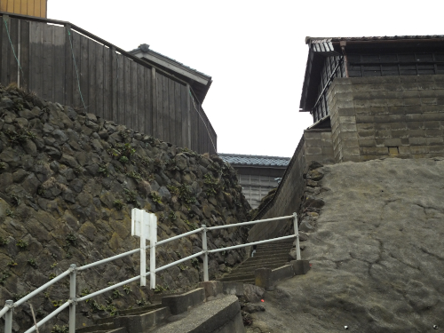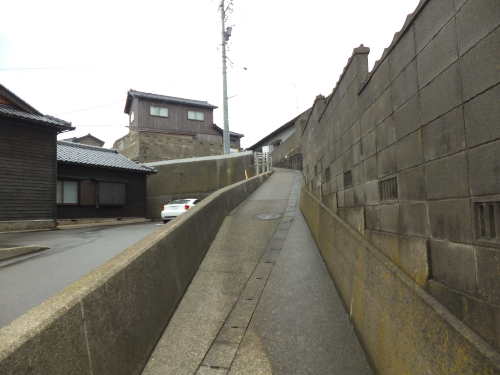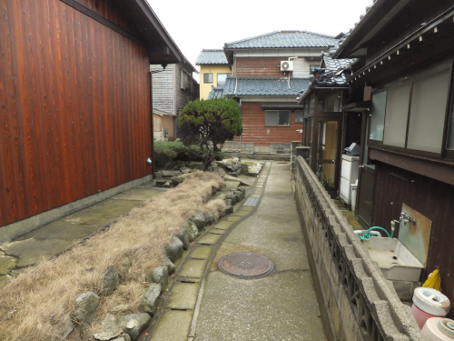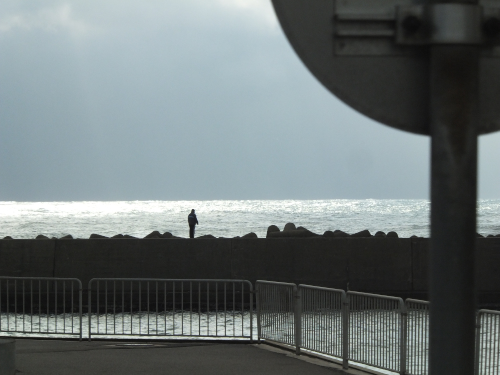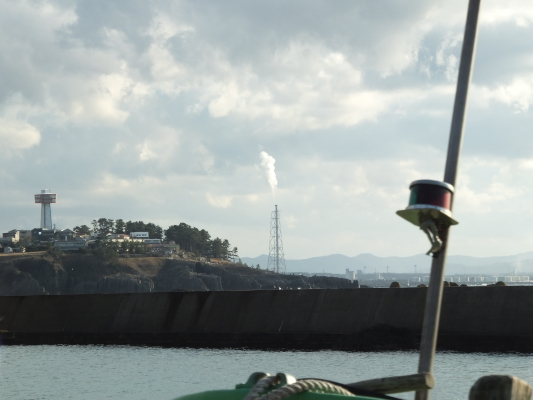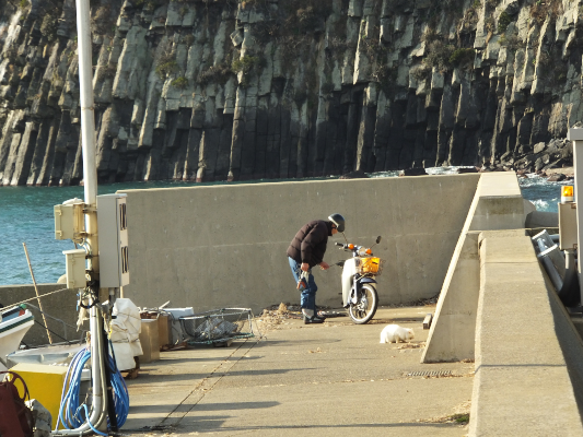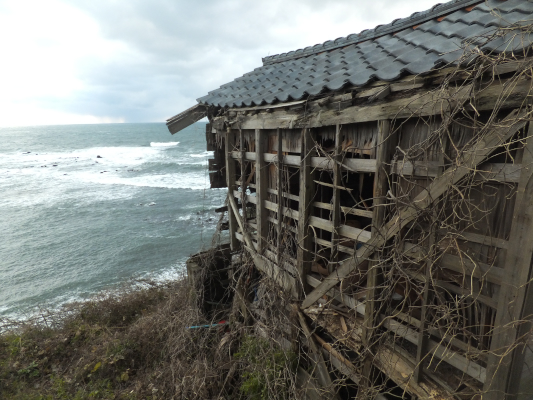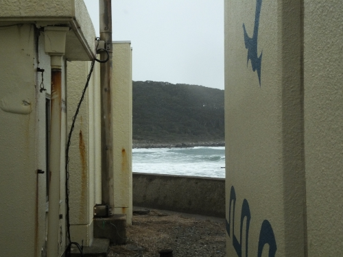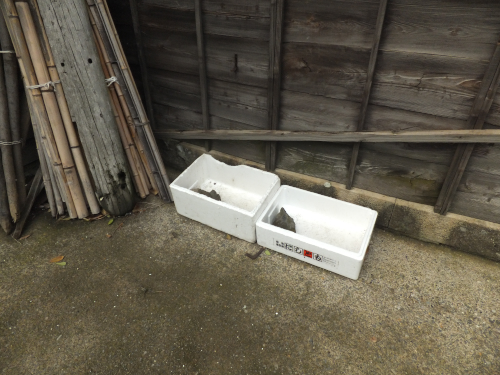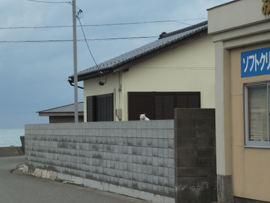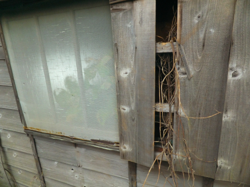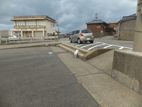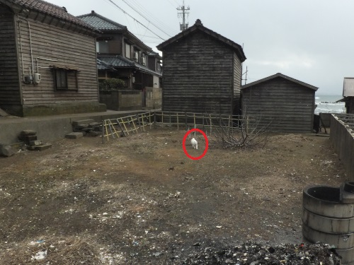 寒過ぎるので漁具小屋とポンプ施設の隙間に避難す