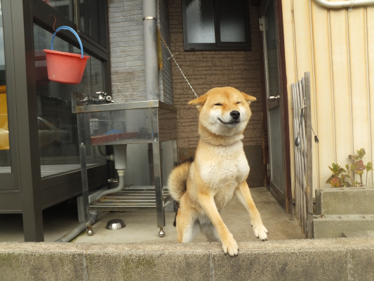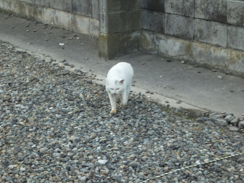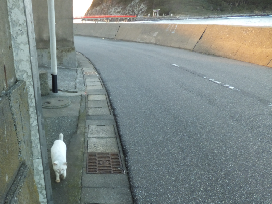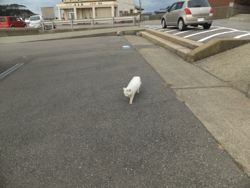 シロクンは鍵束の音を察知して土産物屋のところまで出てきたが