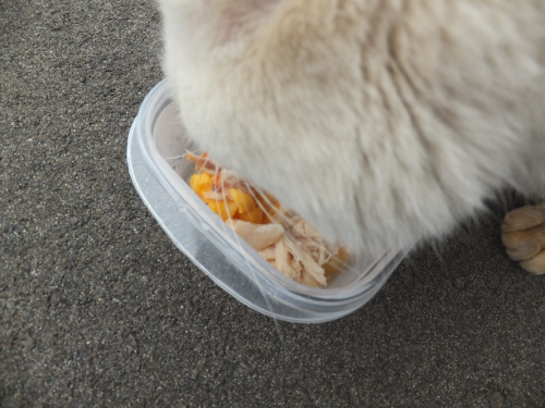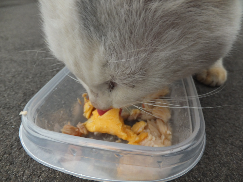 せっかく焼いたった玉子焼きも冷めてしまったぞシロクン