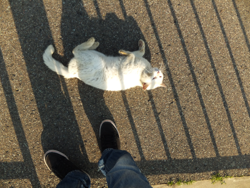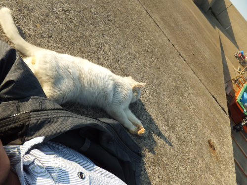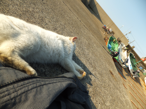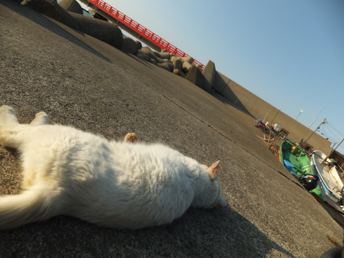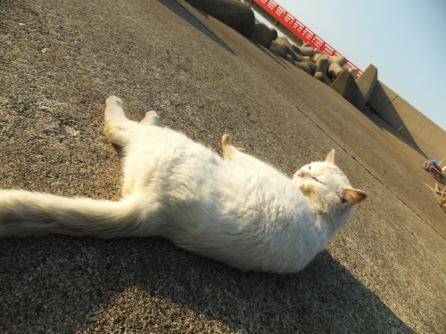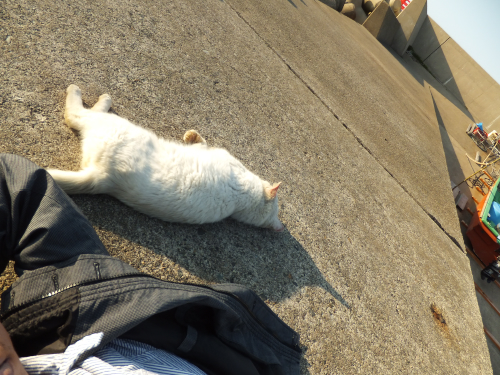 俺がシロクンと同じ体勢で突堤で寝てたら