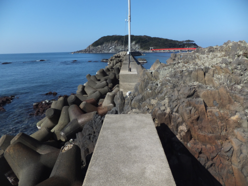 こうやってシロクンが俺と突堤を歩いてくれたり