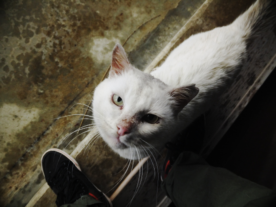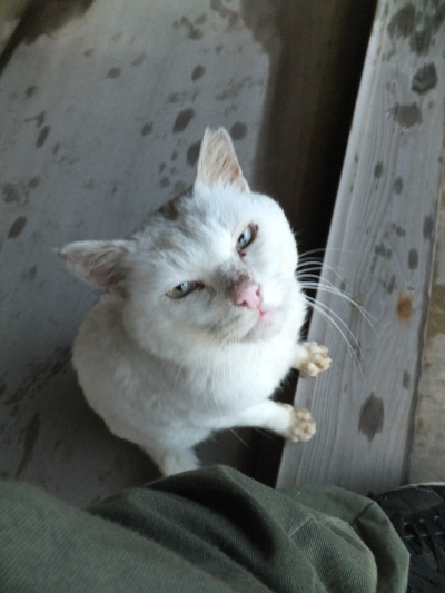 たまにシロクンはこうやって俺の脚に前脚をかけてくる事があるが