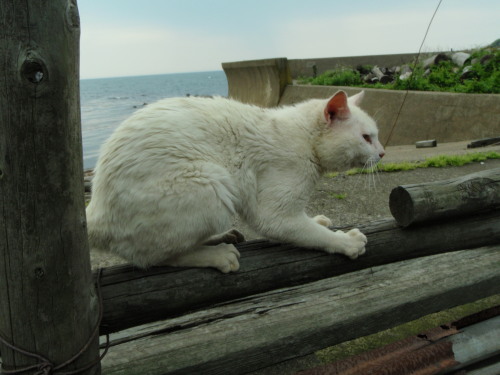 この白猫は海を見ていた