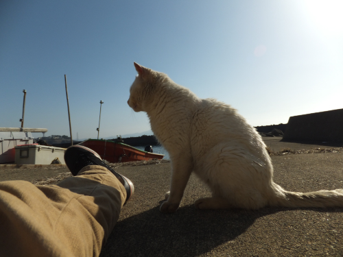 暫くの間、駐車場側の突堤でシロクンと日向ぼっこをしていたが