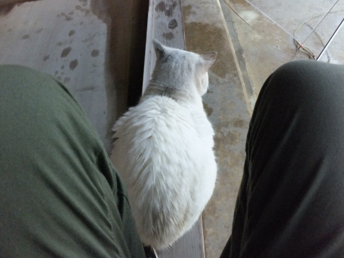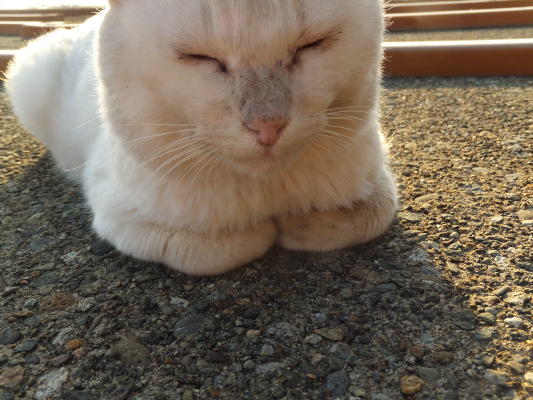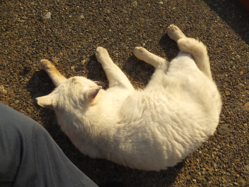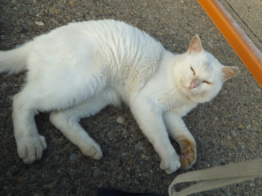 なんか会う度に薄汚い野良猫になってきたなシロクン。