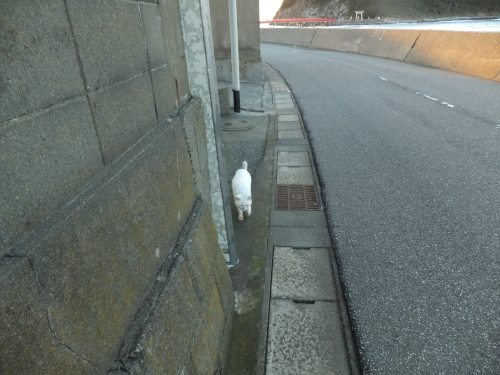 きっと風を避けられる民家のほうにシロクン居るな?