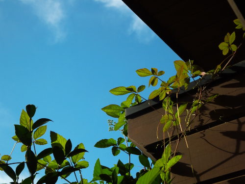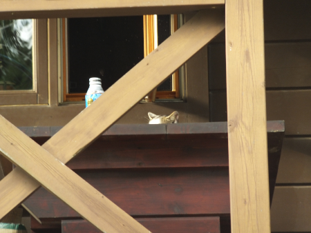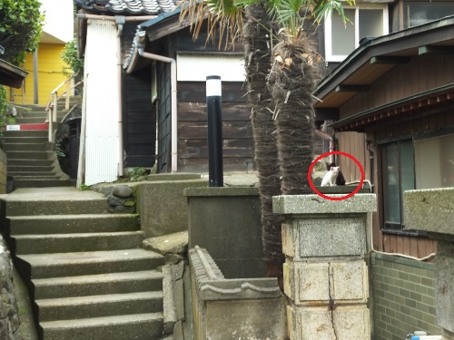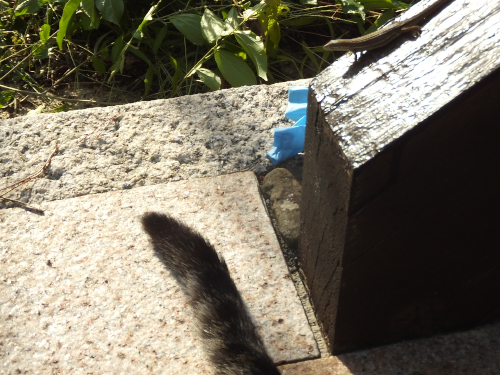 シロクンはこっちの民家の日陰に避難していた。