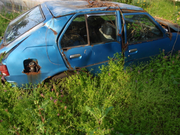 これだと廃車のボディーの錆色と同色系の