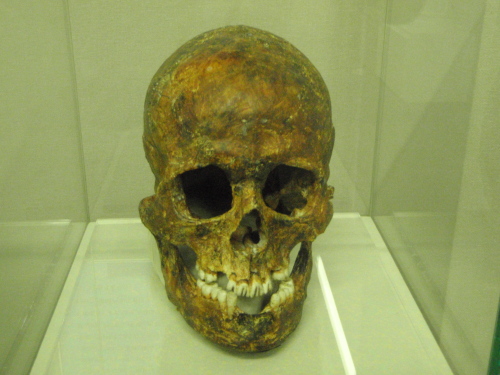 【 叉状研歯のある縄文人の頭骨 】