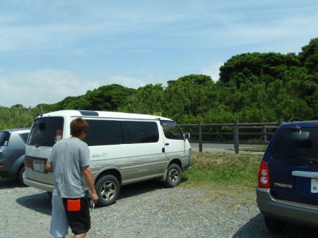 砂利道の駐車場に車を停めて