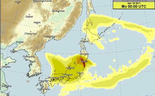 18日、日本列島の放射線物質拡散予測