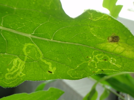ヒマワリの葉っぱを食い荒らしていた