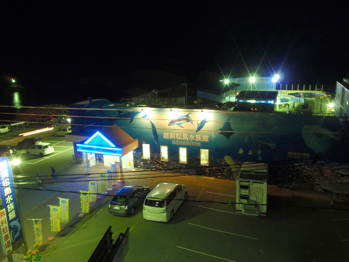 夜の水族館を立体駐車場から見下ろした ↓
