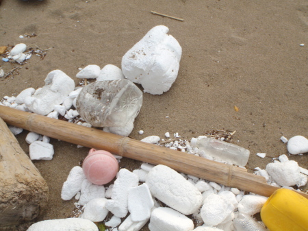 ハッポウスチロールの塊の中の一個を蹴飛ばしたら